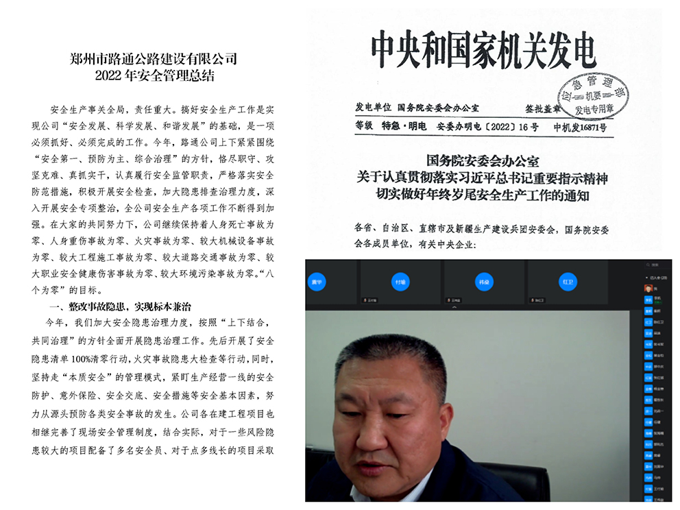 12月15日,我公司采用線上會議形式組織召開2022年第四季度安全生產例會暨安全生產工作總結會。公司安委會主要領導、成員單位安全主管領導及一線專職安全管理員參加會議。會議由公司安全法務部部長孫仲垚主持。