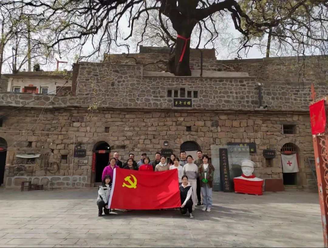 體驗了勞動的喜悅后,大家又懷著崇敬的心情來到環(huán)翠峪八路軍后方醫(yī)院舊址參觀學(xué)習(xí),緬懷革命先烈,接受革命傳統(tǒng)教育。八路軍后方醫(yī)院舊址坐落在臥龍臺寨正下方的三墳村里,隱藏在一株萬年古橿覆蓋下的三孔簡陋的窯洞里?箲(zhàn)時期,這里屬于豫西抗戰(zhàn)革命老區(qū)。1944年4月,皮定鈞司令員和徐子榮政委率領(lǐng)八路軍豫西抗日先遣隊來到這里,與敵人展開激烈的戰(zhàn)斗,并取得最終勝利。參觀過程中,全體黨員、入黨積極分子認(rèn)真觀看著歷史文獻(xiàn)資料,陳列的革命展品,在皮定鈞司令員半身像前駐足、靜默,感受著革命老區(qū)、軍民一家親的熱血深情。