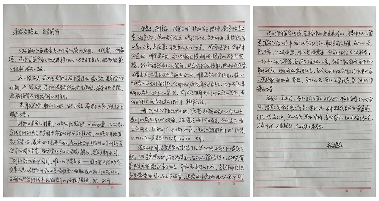 鑒古可知今,學(xué)史可明智。歷史是最好的教科書,不斷重溫黨和人民共同走過的光輝歷程,從革命的歷史中汲取智慧和力量。通過為期幾天的學(xué)習(xí),我不僅對歷史有了更深入的了解,也獲得了一種積極向上,勇往直前的精神狀態(tài)。這些寶貴的體會將激勵著我,作為一名普通黨員來說,最好的詮釋這份精神的存在,就是以實際行動投身于工作和學(xué)習(xí)中去,牢記長征精神,珍惜當下,遇到困難,迎難而上,立足自身工作,堅守崗位職責(zé),懷有矢志奮斗的心,無私奉獻的精神,努力爭創(chuàng)一流工作業(yè)績,開拓公路事業(yè)發(fā)展新局面。