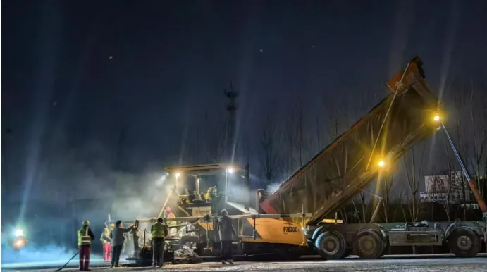 數(shù)九隆冬寒意濃。1月10日深夜,國道107線東移開封境(炎黃大道至許昌交界)新建工程施工項(xiàng)目瀝青攤鋪工程正上演了一場(chǎng)時(shí)間與速度的激烈角逐。在這寒氣籠罩大地的時(shí)刻,項(xiàng)目部全體參建者們,采取“白加黑”“五加二”的工作模式,奮戰(zhàn)在施工一線,將全部身心投入到搶工期的“戰(zhàn)斗”中,為此次攤鋪任務(wù)順利完成開啟了“加速鍵”。