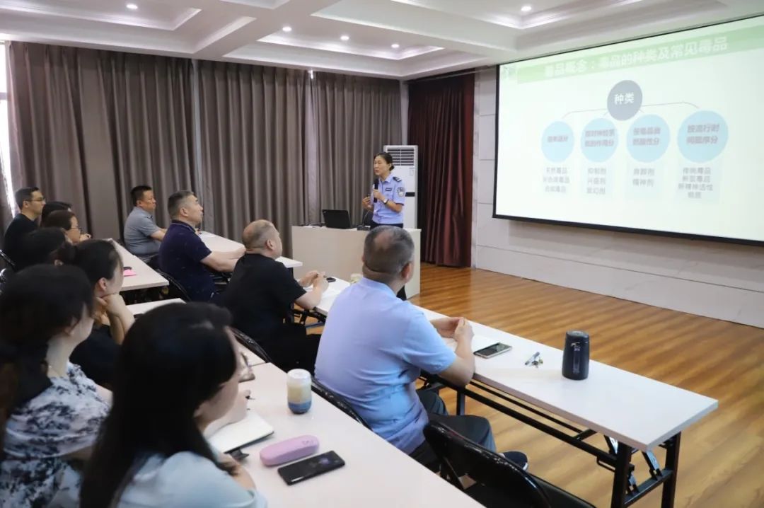 活動(dòng)特別邀請(qǐng)了“豫戒先鋒”河南司法行政禁毒宣傳志愿服務(wù)隊(duì)石佛強(qiáng)制隔離戒毒所禁毒民警李明作專題輔導(dǎo)。李警官結(jié)合多年工作經(jīng)驗(yàn),通過(guò)圖片、視頻資料等,系統(tǒng)講解了常見(jiàn)毒品及新型偽裝毒品的種類、特征、巨大危害及成癮機(jī)制,深刻揭露了毒品犯罪的手段與陷阱,并傳授實(shí)用防范技巧?;顒?dòng)現(xiàn)場(chǎng)特別設(shè)置仿真毒品模型展示區(qū)。黨員干部通過(guò)近距離觀察各類毒品(特別是極具迷惑性的新型偽裝毒品)仿真模型,有效提升了毒品辨識(shí)能力。